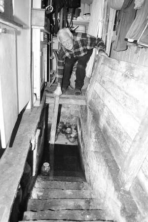 — Дивіться, начало води, — ставить палку на дно погреба, витягає мокру. — Метр двадцять, — визначає на око. — Це все під домом. Зараз люди на роботах, а утром та вечером, коли вони в туалет ходять і купаються, рівень піднімається. Ми цю воду п'єм, бо другої нема.