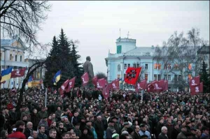 — Люди на вулиці — значить, щось негаразд,— звертається до житомирян. — Ми з вами десять разів обдурені, декілька разів обшукані.