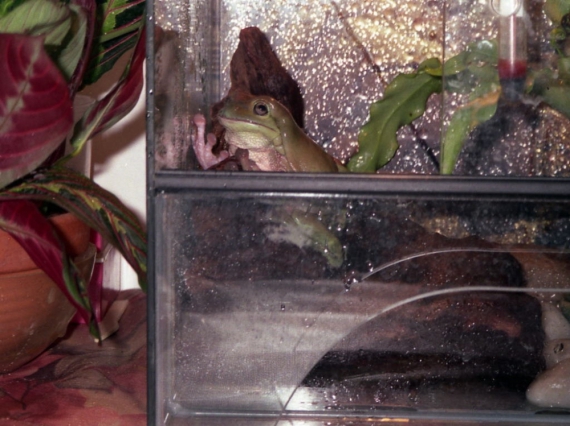 "Первую квакшу мне сестра подарила на день рождения, - рассказывает Леонид Максимович. - Назвал ее Дашкой. Думали, что это самка. Но когда у квакши начался брачный период, в доме никто не мог спать. Она тарахтела, как трактор. Вызвали ветеринара. Он сказал, что наша Даша самец, который самку требует. Пришлось жабе купить пару и изменить кличку на Давид".