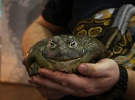 "Это вид Чесночница, - говорит Шевченко. - Еще есть четыре жабы и две лягушки-быки. Это крупнейшие водные лягушки. Мои весят по 300 граммов. Кормлю их насекомыми и моллюсками. Едят в основном ночью. В нашей квартире целое лето не было ни одной мухи и комара. У знакомого Андрея лягушка-бык Кейти доросла до 500 граммов. Только длина задних ног в таких лягушек 15-20 сантиметров. В дикой природе такие самки откладывают по 10 тысяч яиц. На птичьем рынке Андрей купил ей самца. Хотел, чтобы Кейти отложила икру. Но та лягушка занесла в аквариум какую-то инфекцию. Оба сдохли через 2 недели".
