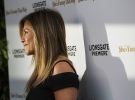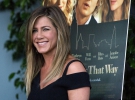 Актриса выглядит счастливой и сияющей. Энистон вернулась в Лос-Анджелес как раз на премьеру своего фильма "Мисс Переполох" (She`s Funny That Way). Для мероприятия она выбрала черный комбинезон с открытыми плечами, демонстрирующий полученный на Бора-Бора загар. Можно рассмотреть обручальное кольцо актрисы из желтого золота, инкрустированное бриллиантами.