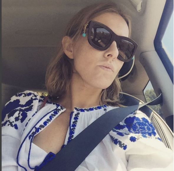 Телеведущая Ксения Собчак известна своей страстью к моде, на этот раз она запостила на своей странице в социальной сети фото, на котором позирует в своей машине в вышиванке.