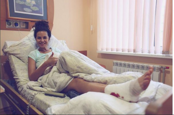 "Слава Богу! Осталась жива! Можно сказать отделалась легким испугом! Еще повезло, что сразу же сделали операцию и теперь я спокойно смогу восстанавливаться. Я никогда не увлекалась экстримом, но мечтала почувствовать как это ... летать. Первая часть полета была идеальной! Ну а потом парашют попал в струю воздуха и не раскрылся ... в тот момент, когда ты на запаске летишь вниз пробегает жизнь как кинолента! а главное, ты не можешь остановить падение или задержать время ... пострадала правая нога, но огромное спасибо моему инструктору, который вовремя среагировал и я осталась жива. Друзья! Не все мечты нужно воплощать в жизнь. я снимала блог в это момент ... правда, ирония;) так что вы все сможете скоро сами увидеть !!! ", - подписала фото певица. На снимке Настя лежит в постели с травмированной ногой.