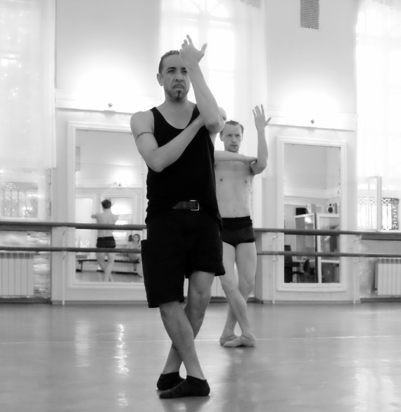 "Сегодня мы репетировали сцену в" back room "- это подвал, темная комната, где все пьют запрещенный виски. В своем либретто Дуайт выделил сюжет сухого закона в Америке. Главный герой эпизода Мейер Вулфшейм - партнер Гэтсби, с которым они делают свой нелегальный бизнес", - рассказывает Виктор Ищук. Он - солист Национальной Оперы, танцует ведущие партии в классических балетах. В постановке Родена ему дали роль Ника - друга Гэтсби. "У меня на самом деле работы больше, чем у Дениса Матвиенко, который играет главную роль. Мой герой вообще со сцены не сходит, он собственно рассказывает эту историю. В моей роли самое сложное то, что хореография Дуайта очень насыщенная, сложная по координации, работают все части тела. Настроение музыки часто меняется - это держит темп балета. Сейчас идет долгая и сложная работа - постановочный процесс. Главное начнется в сентябре - тогда будем репетировать по 8 часов в день минимум. Получим 2 дня на репетиции на сцене с декорациями, светом и костюмами. Костюмов еще не видел, а вот декорации просто поражают: целый штат специалистов работают над постановкой света. Комнаты будут разделяться с помощью света, будут летать огромные железные станки и люстры."