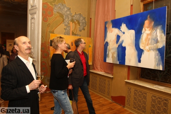"Как-то с другом гуляли по Андреевского спуска и зашли в галерею "Триптих". Там была выставка Владислава Шерешевского. Мы купили его работу "Скрипач на крыше". Потом мы решили купить галерею", - рассказывает владелец галереи Юрий Комельков на праздновании 25-летия "Триптих" в художественном центре "Шоколадный дом".