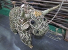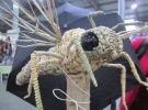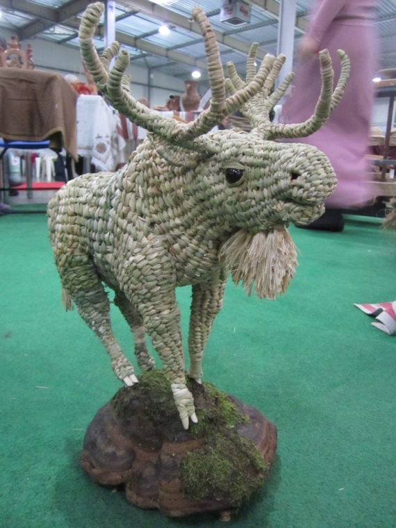 "Очень люблю наблюдать за животными, воспроизводить их. С носика начинаю и хвостиком заканчиваю. Плетется руками, как корзина, только другой формы, животной. Если плету насекомое, насаживаю рогозу на каркас, а затем лапки на проволоку наматываю. Дома изделия не держу. Все сразу расходится. у меня трое детей. Они мне помогают - рогозу вокруг дротиков оплетают. Игрушку среднего размера плету несколько дней. Бабку можно за день-два сплести".