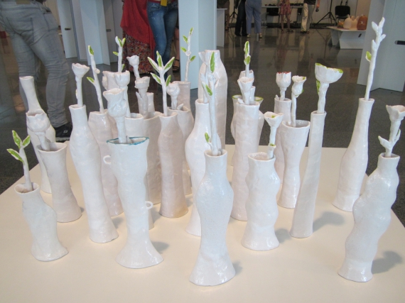 Керамист Нелли Исупова создала композицию "Небесная сотня" в память за майданівцями, погибшими на баррикадах в феврале. 30 тонких белых ваз из глины с глиняными цветами и побегами в них напоминают небоскребы, или же кладбище, где вазы - вместо крестов.