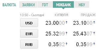 По состоянию на 13:50 пятницы, 30 октября, котировки на межбанковском валютном рынке Украины установились на уровне 23,00 - 23,10 гривны за доллар.