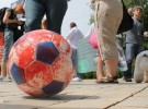 В 12:30 активисты, некоторые из которых были одеты в футбольную форму и держали "окровавленные" - разрисованные красной краской - мячи, двинулись по бульвару Шевченко в направлении Крещатика. По дороге скандировали: "Мы говорим "нет", кровавому Евро бойкот, по трупам бездомных собак чемпионат не пройдет", "Мы вышли на улицу и говорим: мы против убийства и мы победим - друзей в обиду не дадим, мы младших братьев защитим".