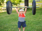 Все снимки мужчина делает около своего дома. Благодаря Photoshop годовалый малыш может поднимать штангу, ходить по бревну, участвовать в соревнованиях по прыжкам в длину.