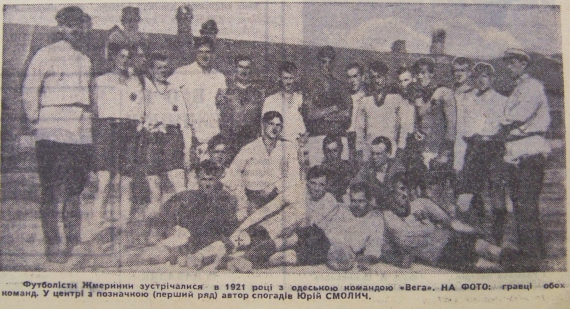 Летом 1921 футбольная команда из Жмеринки поехала в Одессу на ответный матч с местной командой "Вега". В Жмеринке победили гости - 1: 2.