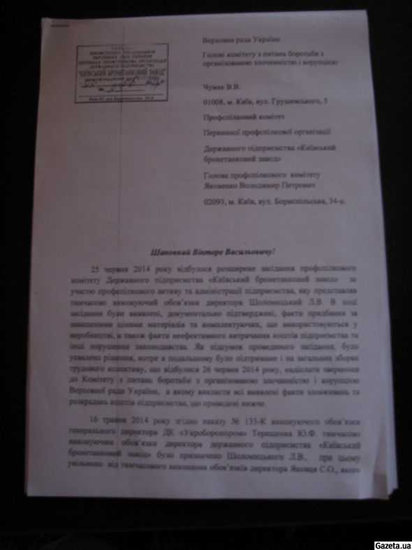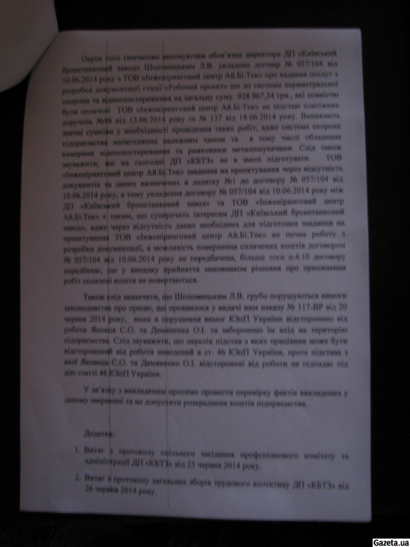 Как следствие, на общем собрании трудовой коллектив КБТЗ принял решение обратиться в ГПУ и СБУ с просьбой провести проверку финансовой деятельности Шоломицкого на должности и.о. директора предприятия.