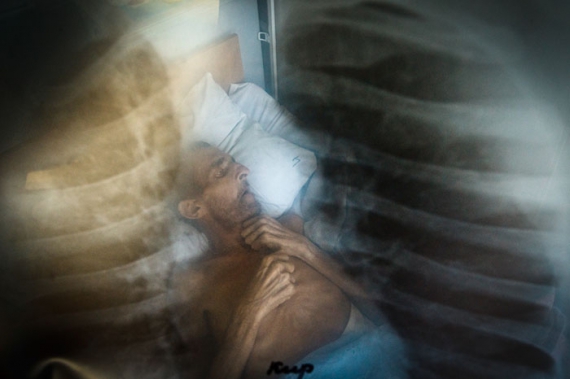 Уже два года киевский фотограф-документалист Максим Дондюк работает с больными туберкулезом с целью уменьшить уровень отчуждения общества от этих людей. Делает он это радикальным и рискованным способом - осмысленно отказывается от защитной маски и живет в одинаковых условиях с героями своего проекта.