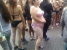 Полторы сотни киевлян практически голышом (в плавках и купальниках, а некоторые — даже в стрингах) штурмовали ТЦ на бул. Перова. Причем была не только молодежь, но и люди 40–50 лет. На счет раз-два-три они должны были заскочить в магазин, найти стикер на 250–500 грн и на эту сумму выбрать одежду.