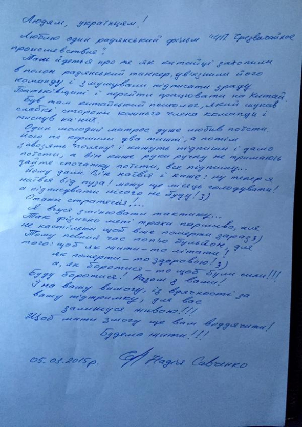 Адвокат также обнародовал письмо Надежды, в котором она написала, что "меняет тактику" своего голодания.