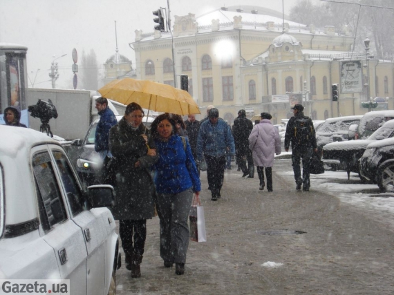 Для многих киевлян и гостей города такая резкая смена погодных условий стала неожиданностью. Большинство из них были одеты по-весеннему, поэтому с трудом добирались до работы, прячась под зонтами.