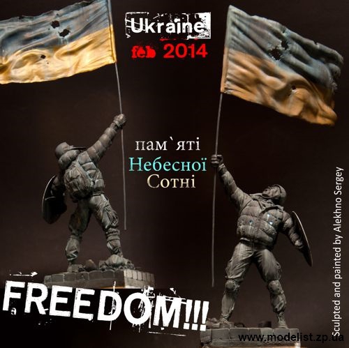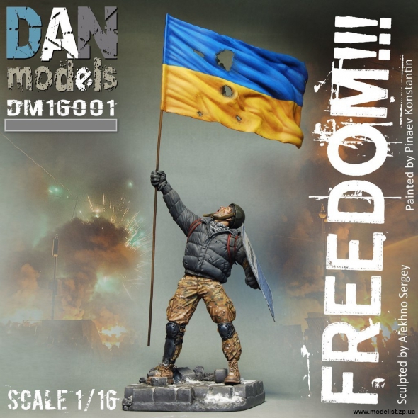 В украинских интернет-магазинах начали продавать сборную фигурку "Активист Майдана" производства украинской компании "Данмодел". Мужчина в каске, куртке, военных штанах и ботинках в одной руке держит флаг Украины, в другой - табличку с автобусной остановки вместо щита.