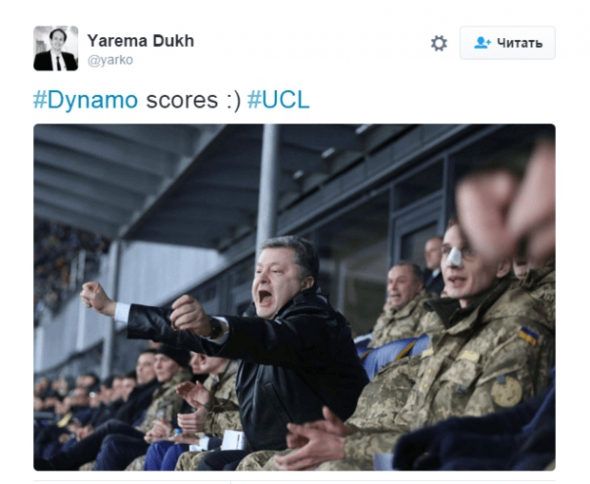 В то же время Порошенко на матче как болельщик выложился на полную силу. Это подтверждает фото, которое появилось в Twitter. На нем президент Украины не сдерживает эмоций.