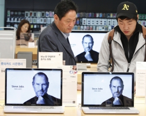 Поклонники Стива Джобса по всему несут цветы, свечи и записки к дверям магазинов компании и к диппредставительствам США. На демонстрационных образцах техники во всех магазинах открыта главная страница сайта apple.com с черно-белой фотографией Джобса и датами его жизни. Флаги с логотипом компании у входа в штаб-квартиру Apple приспущены.