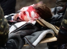 Со сцены Майдана просят о помощи врачей. Много раненых. Солдаты Внутренних войск не выдерживают напряжения - кажутся участникам протеста. От Октябрьского в сторону КГГА идет колонна "пленных" ВВшников.