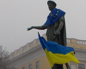 Длина сине-желтого полотна достигла тысячи метров. Участники шествия под лозунгами "Одесса - не Россия" и "Украина - мирная страна" прошли через центр города и завершили шествие у памятника неизвестному матросу.