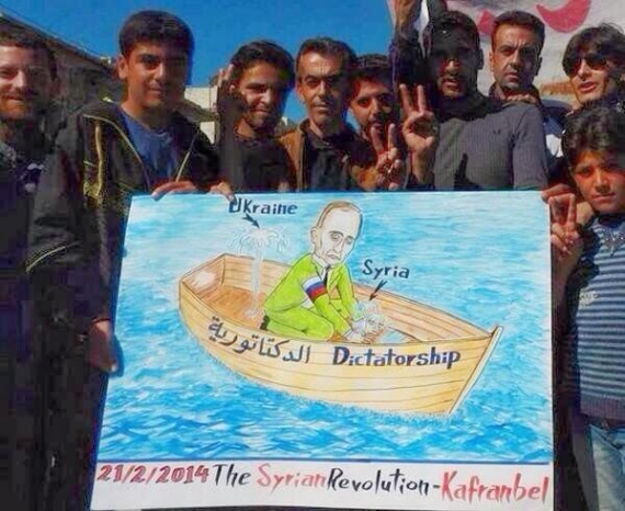 Война в Сирии против диктатора-президента Башара Асада продолжается третий год. Однако сирийцы нашли время, чтобы нарисовать плакат поддержки для революционеров с Украины.