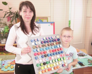 Воспитатель винницкого дошкольного учреждения 37-летняя Ирина Антонюк разработала игру в виде доски с крышечками от пластмасоваих бутылок. Ее использует для улучшения зрения у детей.