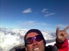 Вершина Монблана оказалась острым гребнем, который простирается на сто метров. Я полюбовался пейзажами и решил себя сфотографировать. Поставил фотоаппарат на таймер и отошел на несколько метров назад. Вернулся, а фотоаппарата нет. Ветром его сдуло в щель. Фотографировал далее с помощью телефона.