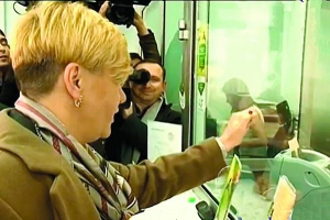 В понедельник глава НБУ Валерия Гонтарева после круглого стола пошла с журналистами купить $200 в отделение "Сбербанка России". Американскую валюту ей не продали. Кассир разговаривала по телефону и не реагировала по просьбы.