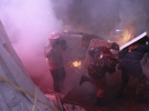 Для разгона протеста силовики использовали свето-шумовые гранаты, водометы, травматическое оружие. Участники протеста подожгли несколько милицейских автобусов, забросали милицию "коктейлями Молотова", отобрали у правоохранителей щиты.