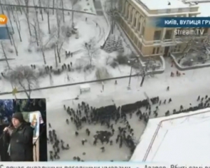 "Беркут" сначала "черепахой", потом бегом продвигался по Грушевского, митингующие отступили.