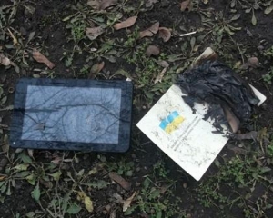 Рядом со зданием, в куче мусора, лежали сожженный паспорт Федчука и разбитый планшет. Также у активиста забрали мобильный телефон.