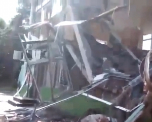 В сеть выложили видео разбомбленого магазина и автостанции во время боя между Славянском и Красным Лиманом в Донецкой области.