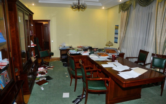 Об этом ГолосUA сообщают очевидцы. Подогнав два грузовика, неизвестные в масках начали сносить в транспорт всю оргтехнику из офиса.