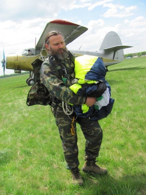 — Деткам высоту давайте 1000 метров, мне 1300 минимум, — договаривается с пилотами перед прыжком. — Вместе с воспитанниками еженедельно приезжаем в Сутиски. Без причастия и исповеди к прыжкам с парашютом никого не допускаю.