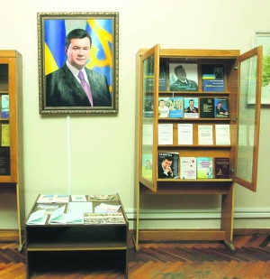 16 изданий Виктора Януковича хранят в Фонде президентов Украины столичной библиотеки им. Вернадского. Они стоят на стенде в читальном зале. На обложках заглавия: "Как Украине дальше жить", ".. И год при власти". Отдельный ряд - авторефераты президента. Рядом - его большой портрет.