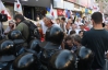 Несмотря на дождь, около 50 "нашеукраинцев" с партийными флагами прошли от парка Шевченко по улице Богдана Хмельницкого к Печерскому районному суду Киева, где присоединились к приблизительно 100 митинговавшим ранее.