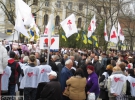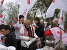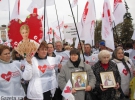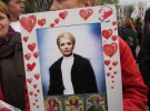 Сторонники Тимошенко стоят с флагами "Батькивщины" и других политических партий, с портретами Юлии Тимошенко и транспарантами. Держат флаги "Батькивщины", "Фронта Змін", "Нашей Украины", УНП.