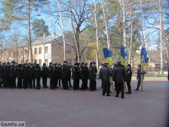 Янукович приезжает около 10.45. В центр идет с губернатором Черкасской области Сергеем Тулубом, мэром Сергеем Одаричем, Раисой Богатыревой и Татьяной Бахтеевой, председателем комитета Верховной Рады по вопросам здравоохранения. Янукович становится за трибуной. Сопровождение размещается справа. Послушать президента пришли медики, студенты и курсанты Академии пожарной безопасности.