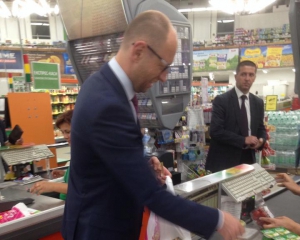 Премьер-министр Украины Арсений Яценюк отправился за покупками в один из столичных супермаркетов.