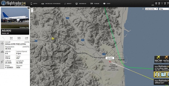 "Президентской самолет" совершил посадку в международном аэропорту Фуджейра, который находится в Объединенных Арабских Эмиратах.