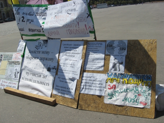 Сейчас в Харькове нет активистов, которые бы провозгласили о начале голодовки, потому что по их мнению, если начинать, то надо идти до конца. Акцию продуктами и деньгами шестые сутки поддерживают неравнодушные горожане. Сегодня к протестующим в Харькове подошел поставить подпись против закона о языке народный депутат от БЮТ Андрей Шевченко. "Власть Шариковых и Швондеров усвоила только одну науку, как воровать деньги. Сегодня власти нечего сказать, поэтому она поднимает на щит языковой вопрос", - отметил депутат.