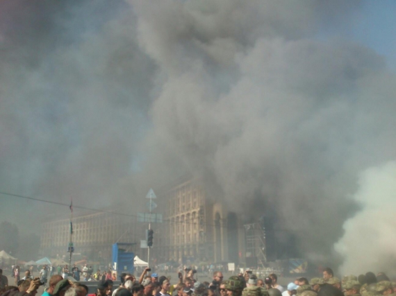 Также на месте происшествия возникло несколько потасовок между силовиками и активистами. Впоследствии туда прибыли пожарные, которые через головы тушат огонь.