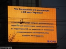 Гигантский баннер, расположенный на высотном здании по адресу ул. Постышева 127 в Донецке транслирует рекламу преимуществ подписания Соглашения об ассоциации Украины и ЕС.