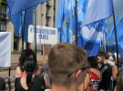 Больше сотни митингующих доставили на школьных автобусах. Как было ясно из разговоров этих людей, они работают в структурах образования и школах и не испытывают удовольствия от участия в бело-голубом митинге. Однако, сказать об этом на камеру или представиться работники образования отказывались. Большинство из них были женщины, они отворачивались и требовали не снимать их лица.