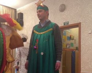 Народный депутат Егор Соболев на праздновании Нового года в саду дочери изображал елку.