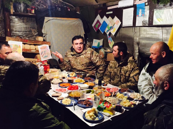 Глава Одесской областной государственной администрации Михеил Саакашвили встретил Новый год в блиндажах на передовой.