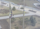 Сейчас над зданием ОГА поднят украинский флаг. Но рядом с большим флагом Донецкой области маленький флаг Украины трудно заметить. После нескольких актов надругательства над государственным флагом в ОГА говорят, что исчерпался запас больших флагов Украины.
