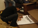 "Сейчас, конечно, приемы граждан у нас особенные. Хотя бы потому, что ведутся они круглосуточно, - Люди приходят, вносят рациональные предложения относительно того, как работать лагерю на Майдане. Вот недавно предложили поднять перед Киевсоветом флаг Евросоюза — очень уж мне эта идея понравилась. Это так же, как 24 июля 1990 у здания Киевсовета подняли флаг Украины. Эту дату отметили как День Государственного Флага. Я уже передал предложение тем, кто непосредственно планирует деятельность лагеря. Мы здесь также собираем средства на нужды митингующих, даем людям теплую одежду. Люди приходят подзарядить мобилки. Коменданты следят за порядком. Все ведут себя очень мирно, а в случае провокаций у нас есть люди, которые всех успокоят".