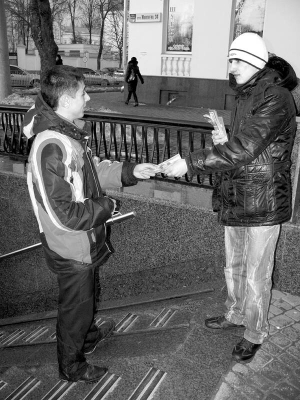 — Хотел иметь собственные деньги, чтобы было за что отдыхать, — говорит полтавчанин Александр Борщенко, 17 лет. - Через друзей нашел работу. Раздаю открытки для ночного клуба "Спайдер". Работаем парами после занятий по 2-3 часа в день. Иногда четыре. Оплата почасовая, ну и, там, сколько раздашь. Зарабатываем от 10 до 20 гривен в час, но деньги получаем только в конце месяца.